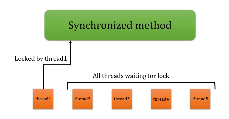 자바에서의 synchronized는 객체에 대한 동기화 로 이루어지며, 이는 동기화된 블록에는 한 시점에는 하나의 스레드만이 접근 및 실행 되도록 조정한다.