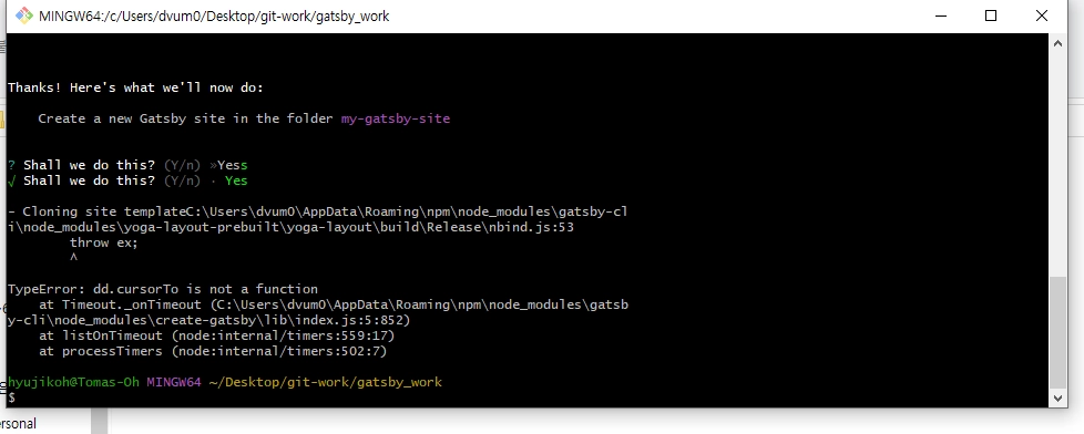 ๋ฌธ์ : gatsby new ์ค๋ฅ๊ฐ ๋์์ ํ๋ก์ ํธ๊ฐ ์ ์์ ์ผ๋ก ์ค์น๊ฐ ์๋๋ ๊ฒ