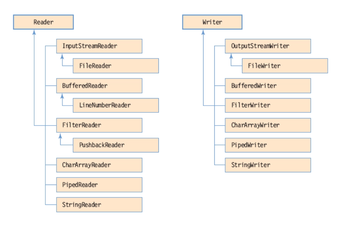 바이트 스트림에 대응하는 Reader와 Writer 클래스로 구성