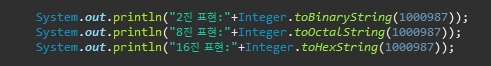 정수에 대한 2진, 8진, 16진수 표현 결과를 반환하는 클래스 메소드