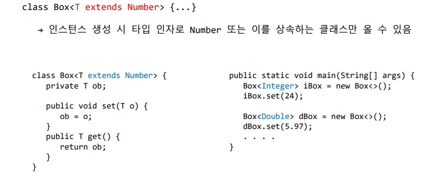 : 인스턴스 생성 시 타입 인자로 Number , 이를 상속하는 클래스만 올 수 있음.