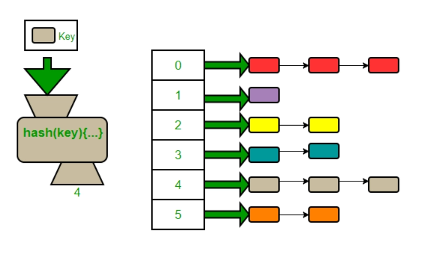 그래서 인덱스끼리는 배열로 저장하고 같은 인덱스끼리는 LinkedList로 되어있다. 같은 인덱스가 생길 때마다 노드로 추가하는것이다.