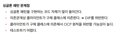싱글톤 패턴의 문제점