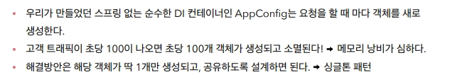 위의 싱글톤 문제들을 전부 스프링 컨테이너가 해결해 주므로 우리는 그냥 사용 하면 된다.