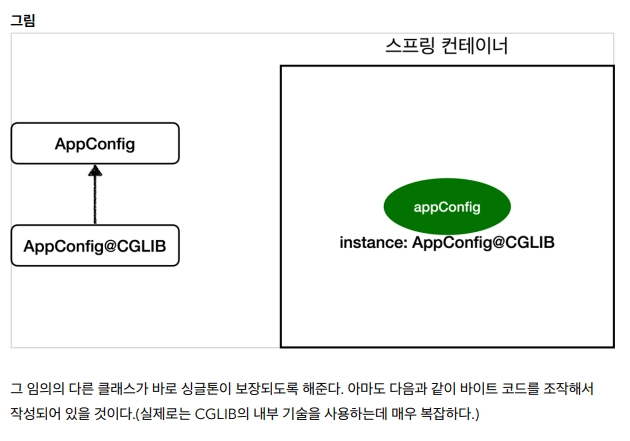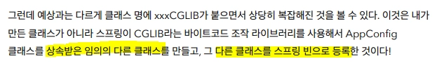 스프링은 클래스의 바이트코드를 조작하는 라이브러리를 사용하여 AnnotationConfigApplicationContext에 파라미터로 넘긴 AppConfig가 스프링 빈으로 등록