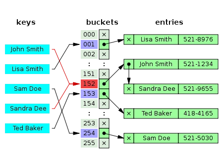 기본 개념은 키를 배열에 저장하는 것으로 배열에 저장되는 위치는, 키를 ‘해시 코드’한 결과에 따라 결정됩니다.