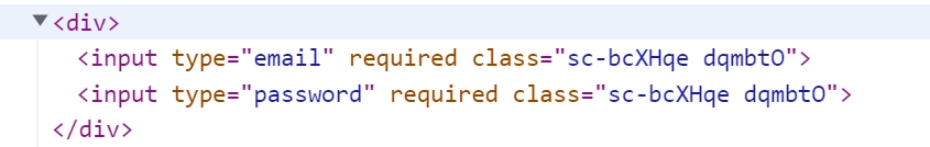 attrs 오버라이딩이 되기 때문에 input type이 text인 요소와 password인 요소가 출력된다.