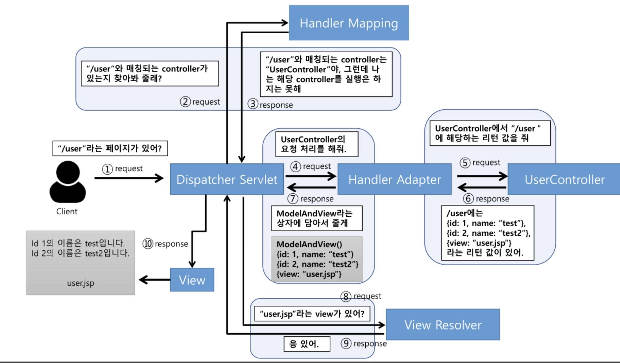 @Controller? Model 객체를 만들어 데이터를 담아 View에 반환하는 역할