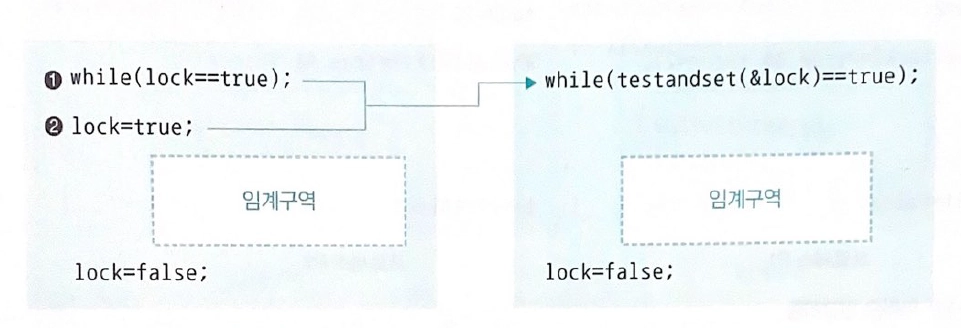 오른쪽은 위의 두 명령문을 한꺼번에 실행시켜 실행 중간에 타임아웃이 걸려 임계구역을 보호하지 못하는 문제를 해결할 수 있다.
