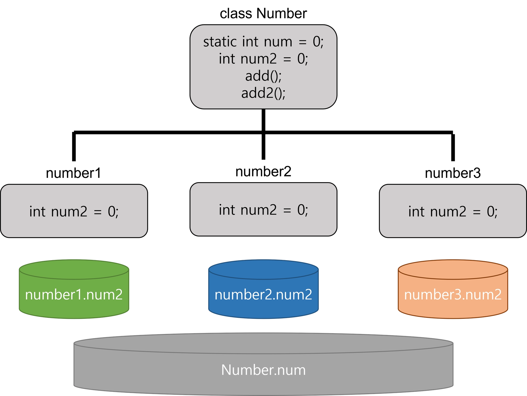 static 변수로 선언된 경우 객체를 생성하면 메모리값을 공유하게 된다.