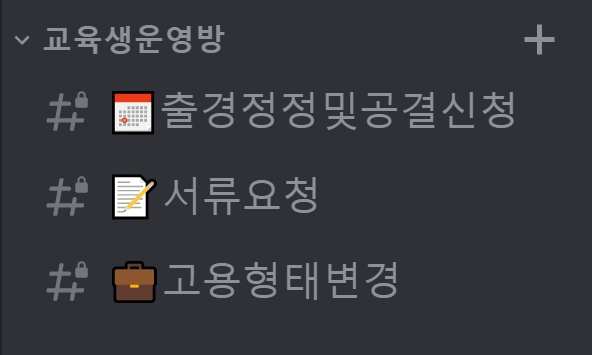 좌측 사이드 바를 보시면 주요 채널 목록들이 있으니, 각 용도에 맞게 채널을 사용해 주세요!