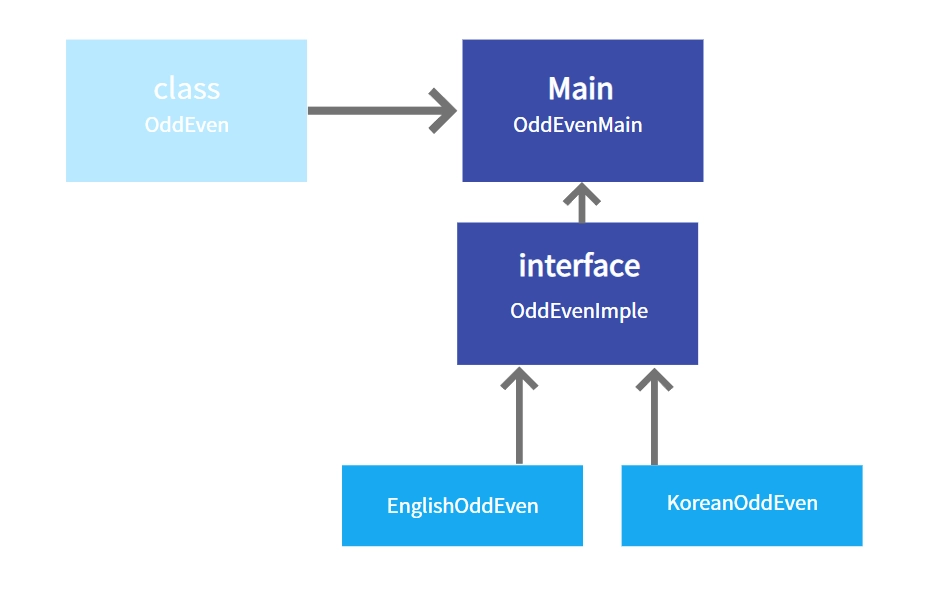 OddEvenMain : 메인함수, 인터페이스와 실질적인 OddEven클래스를 조립해주는 역할을 함