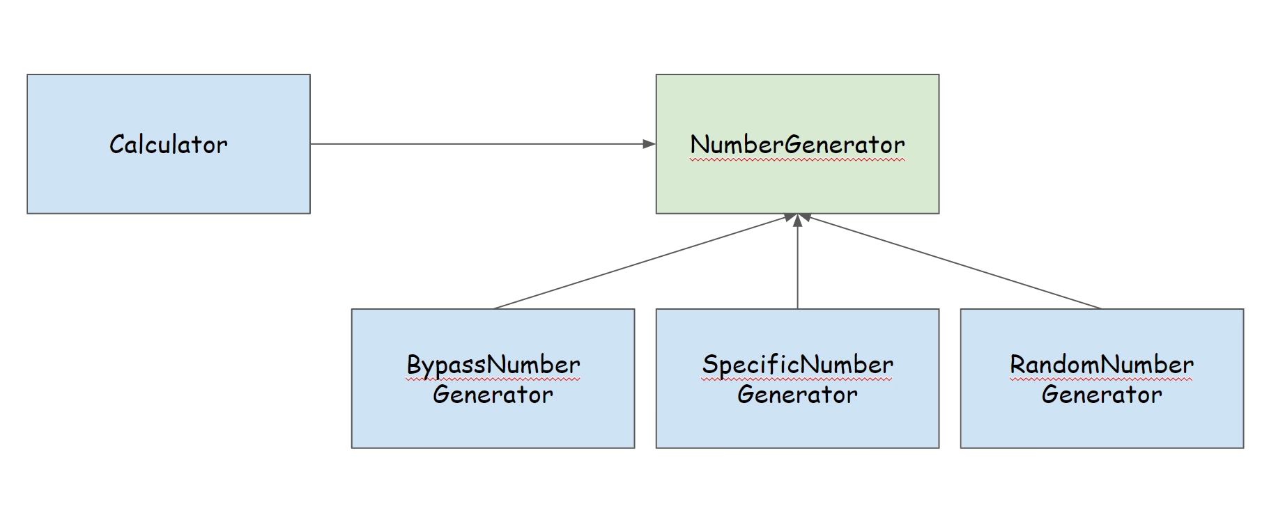 RandomNumberGenerator, SpecificNumberGenerator, ByPassNumberGenerator를 바꿔줌으로서 원하는 기능을 바로 바꿀 수 있다.