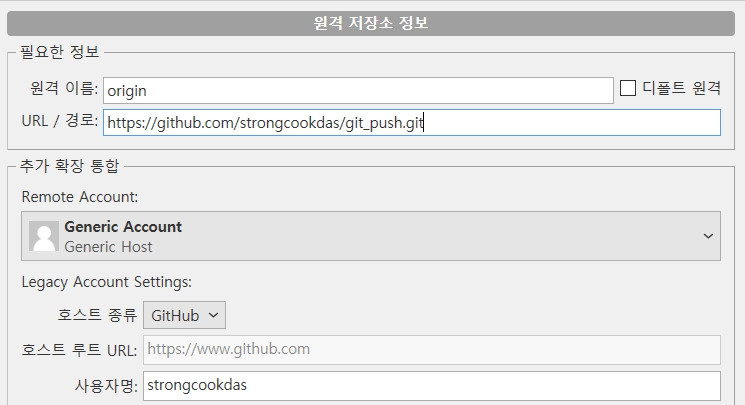 GitHub 계정을 로그인하여 원격 저장소 생성
