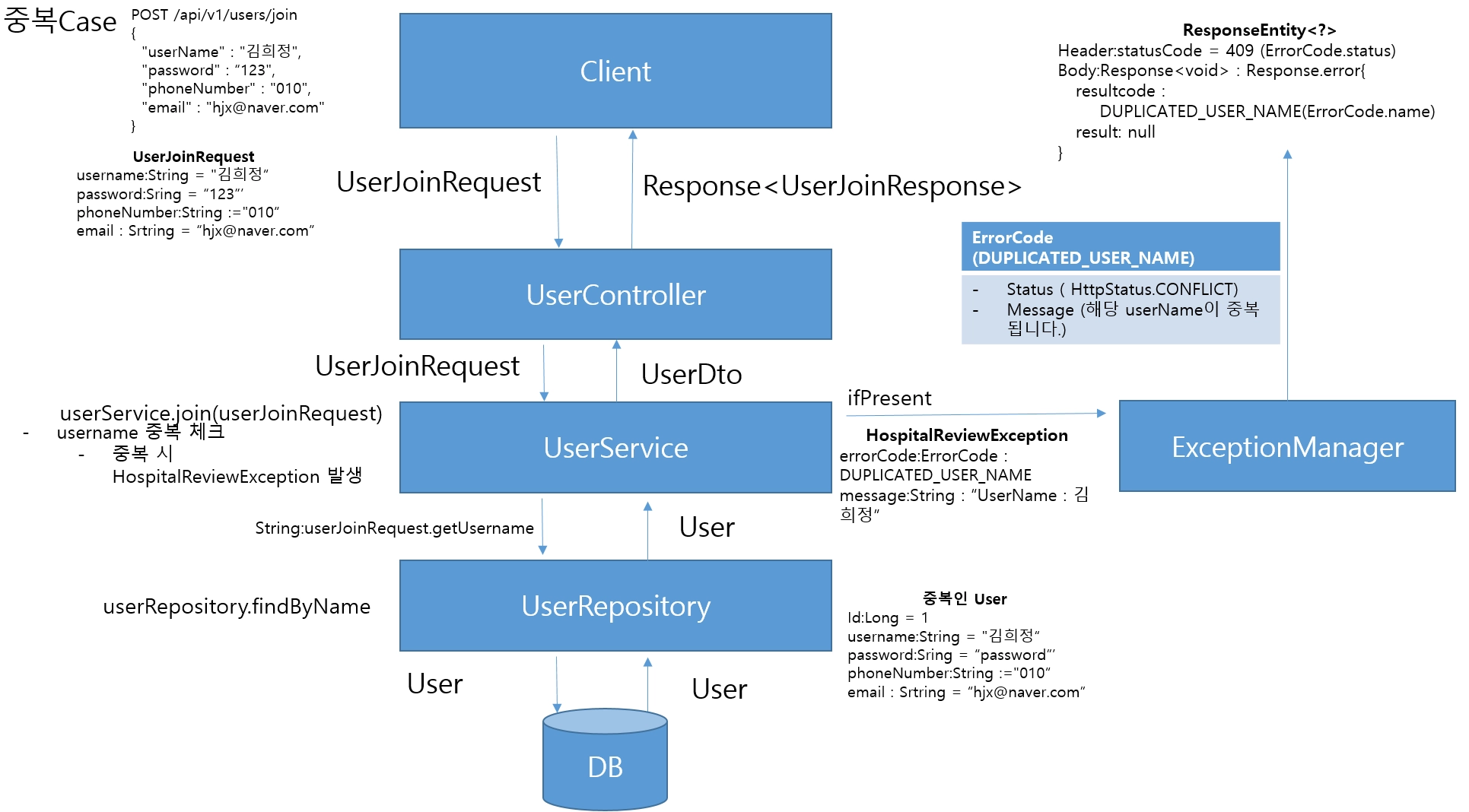 DUPLICATED_USER_NAME, HttpStatus.CONFLICT,"해당 userName이 중복 됩니다." 가 모두 같은 의미