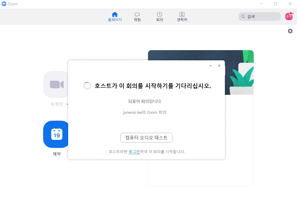 4. 아직 회의가 시작되지 않았다면, 강사님이 접속하는 것을 기다리시면 됩니다.