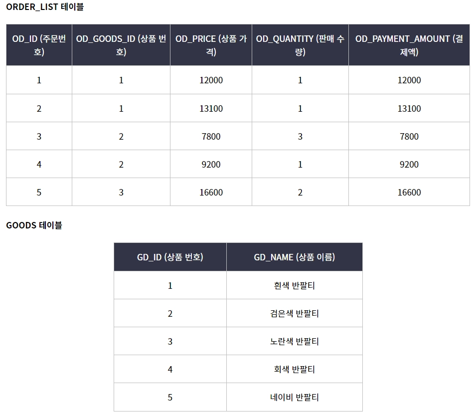 위 쿼리의 경우, OD_GOODS_ID = GD_ID 에 해당하는 GD_ID 마다 쿼리문을 수행한다.