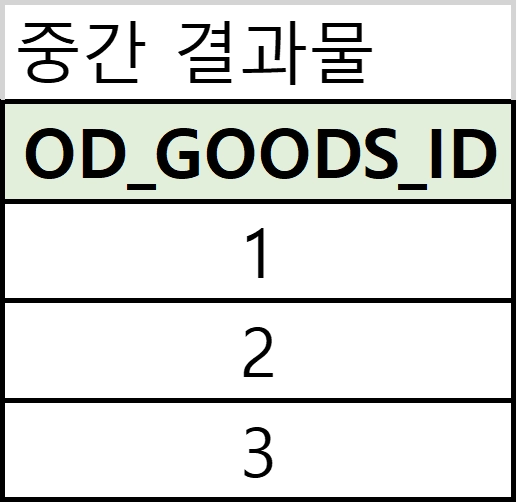 SELECT OD_GOODS_ID FROM 중간결과물A
