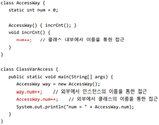 static 변수가 선언된 클래스 내에서는 이름만으로 직접 접근 가능