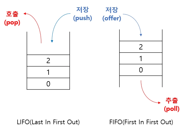 Stack: 먼저 들어간 자료가 나중에 나옴 LILO(Last In First Out) 구조