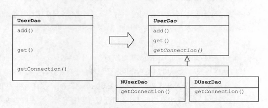 💡 상속관계는 많은 한계점이 있다. 만약 UserDao를 상속받아야할 클래스가