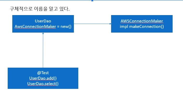 💡UserDao에서 jdbc와 특정 db와 연결된 AWSConnectionMaker의 객체를 사용하고 있다.
