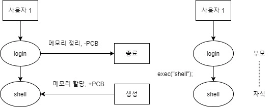 → exec() 시스템 호출을 사용해 login 프로세스의 구조를 shell 프로세스로 활용할 수 있다.