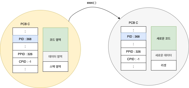프로세스는 그대로 둔 채 내용만 바꾸는 시스템 호출