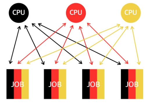 다수의 프로세서가 협력적으로 일을 처리한다. (1개의 컴퓨터에 2개 이상의 CPU)