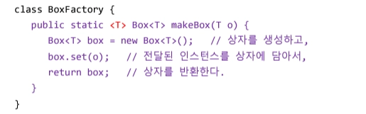 클래스 안에 메소드가 있듯이, 제네릭 클래스 안에도 제네릭 메소드를 정의합니다.