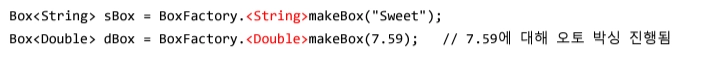 Box<Apple> appleBox = new Box<Apple>(); // Apple 형으로 Box 클래스 생성