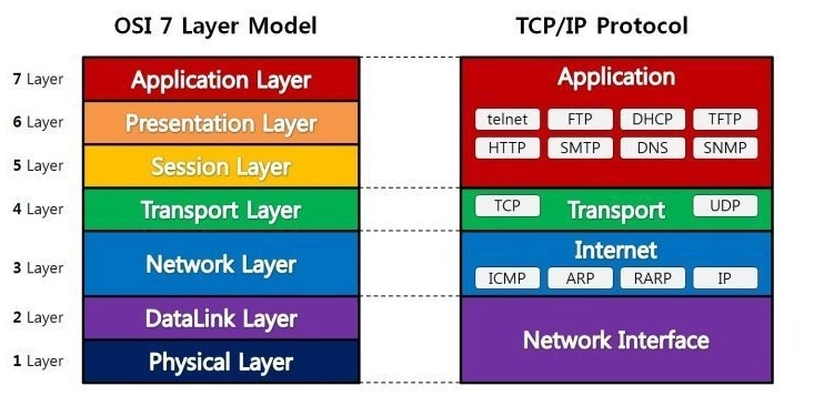 TCP와 UDP는 OSI의 7 계층 중 전송계층에서 사용되는 프로토콜이다.
