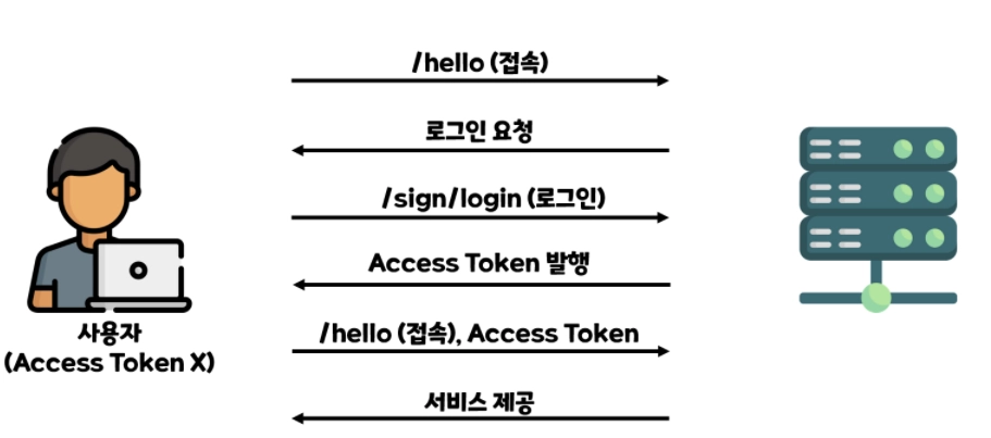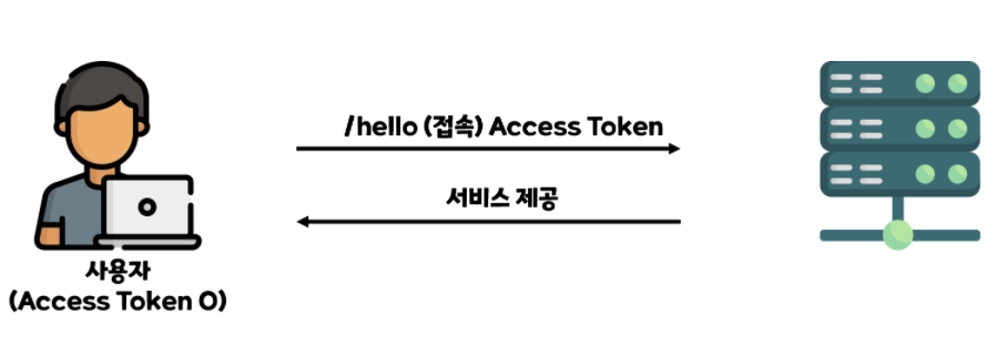 이전에 인증을 받은 사용자는 Access Token을 소유하고 있으므로 서버에 서비스를 요청할 때 같이 보내기