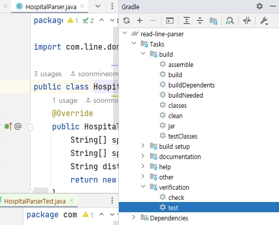 → 통합 테스트 : 전체 테스트 ( 우측 gradle 탭에서 test 선택)