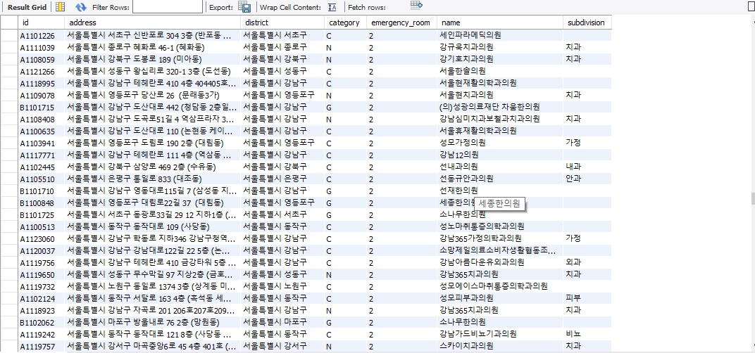// 리스트에서 Hospital 객체를 하나 가져와서,