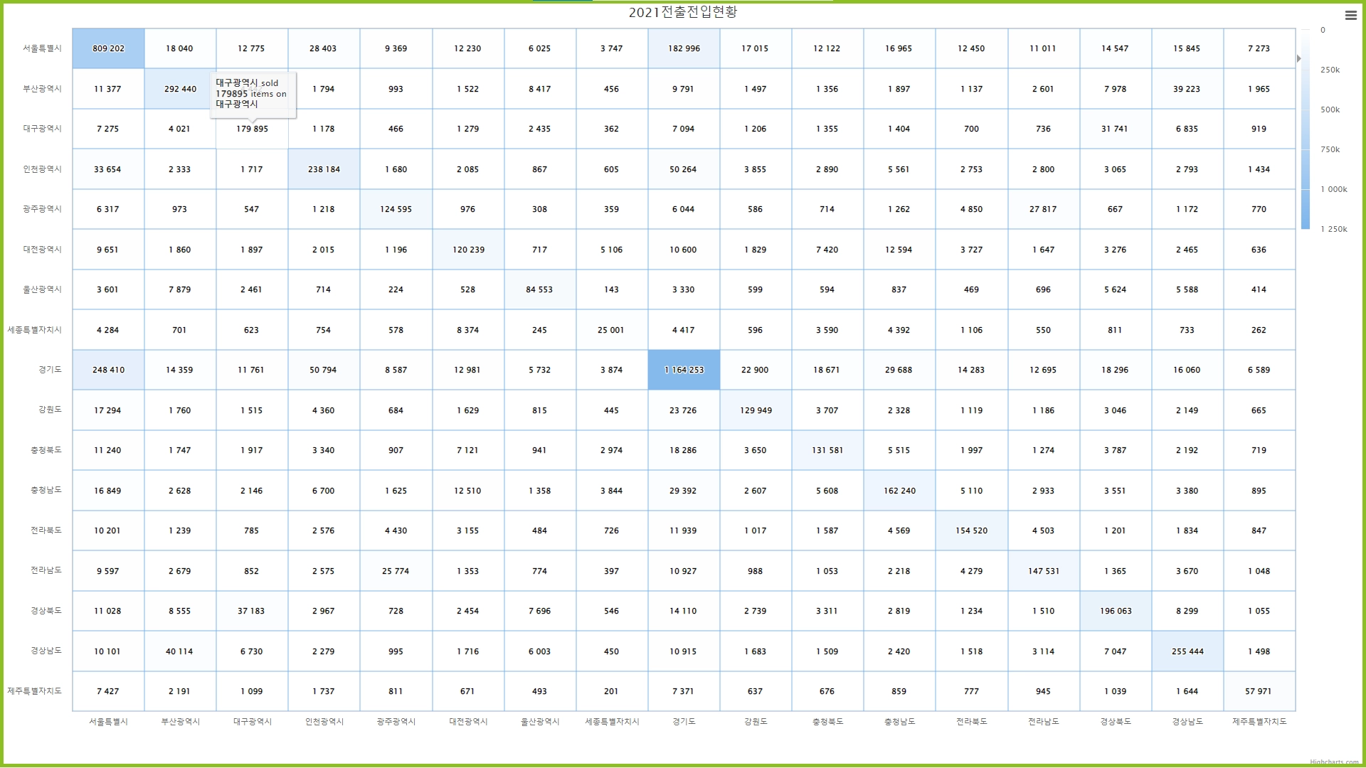 1. 전입시도 전출시도를 알고 이사한 개수를 알아보기