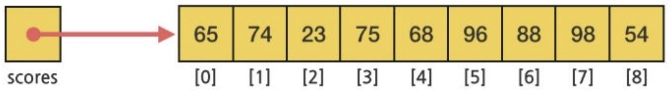 배열은 연속된 저장공간으로 첫 번째 요소의 index는 0이고, 마지막 요소의 index는 9가 된다.