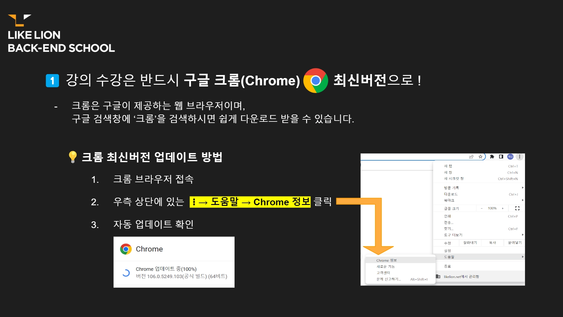 강의 수강은 반드시 구글 크롬(Chrome) 최신버전으로 !