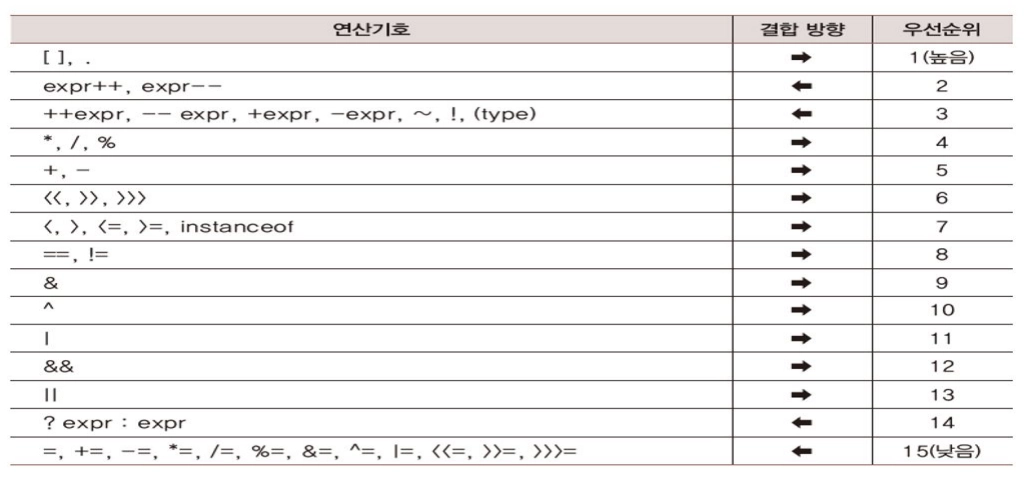 결합 방향은 같은 우선 순위일 때 먼저 계산 하는 것이다.