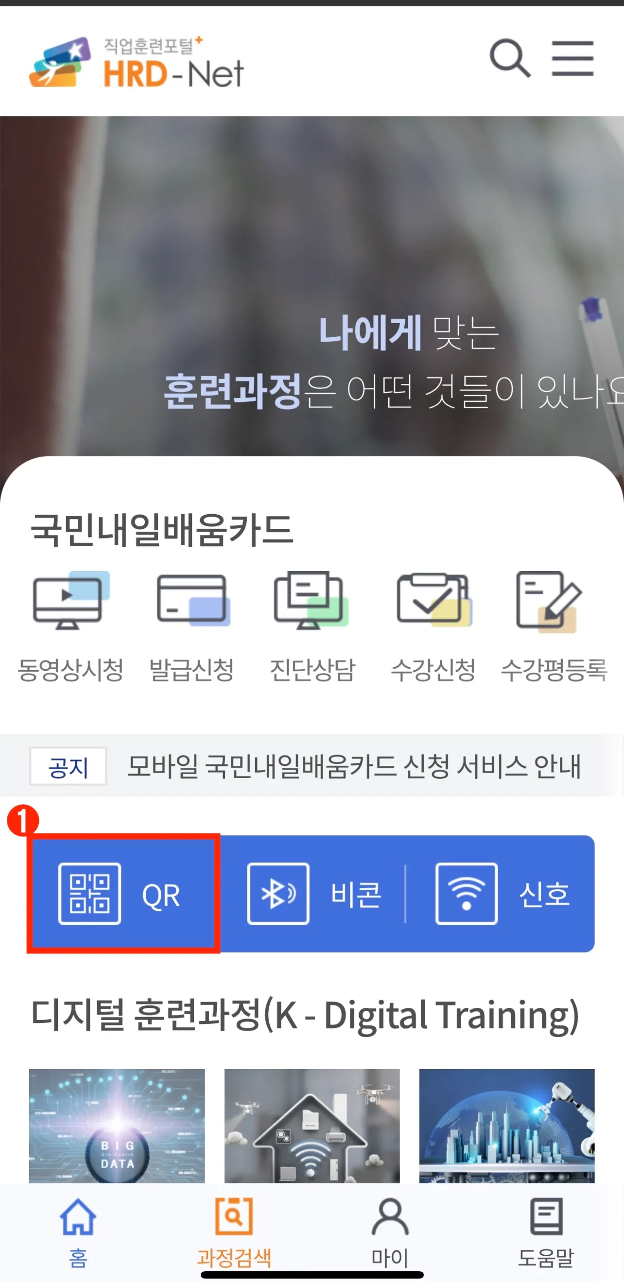 안내된 출결 방법은 한국고용정보원에서 제공한 스마트폰 출결관리앱 매뉴얼(훈련생용)을 기반으로 한 HRD-Net 출결 관리 앱을 통한 방법입니다.