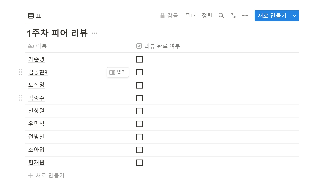 4) 리뷰가 끝났으면, 자신의 이름에 체크를 한다.