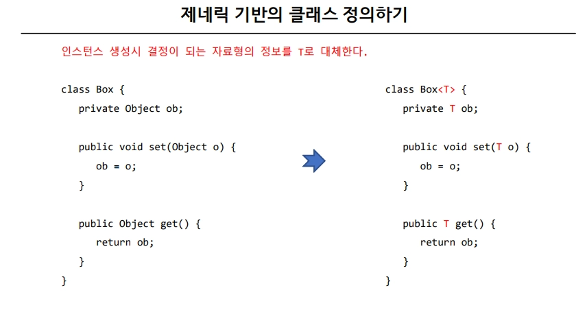 인스턴스 생성 시 결정되는 자료형의 정보를 T로 대체