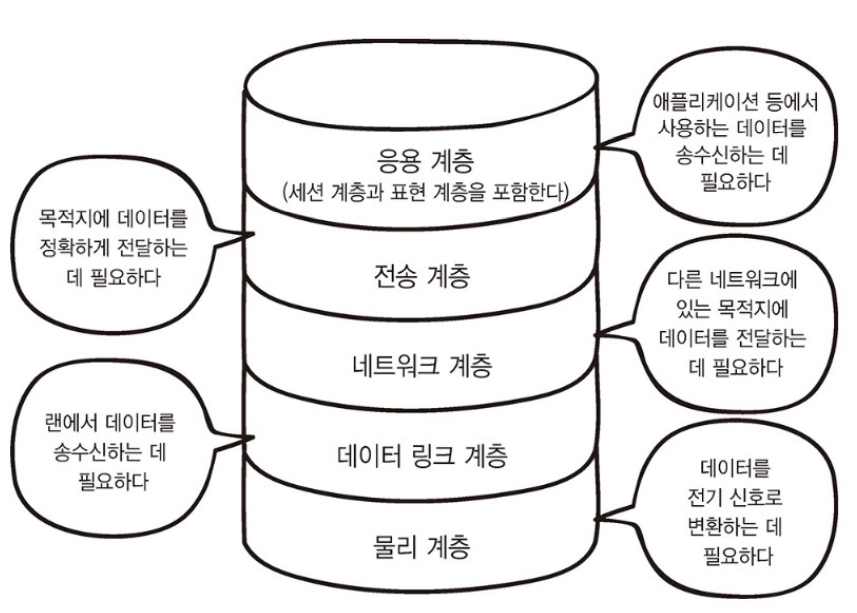 컴퓨터 → 응용 계층으로 전달(캡슐화)