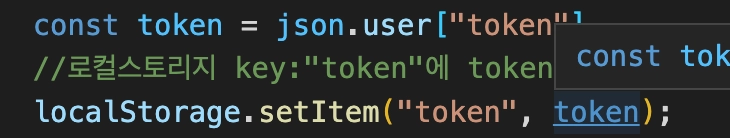 회원가입 ⇒ 로컬 스토리지에 토큰(왜냐하면 회원가입 성공하면 로그인이 되는 형태인거 같아서)