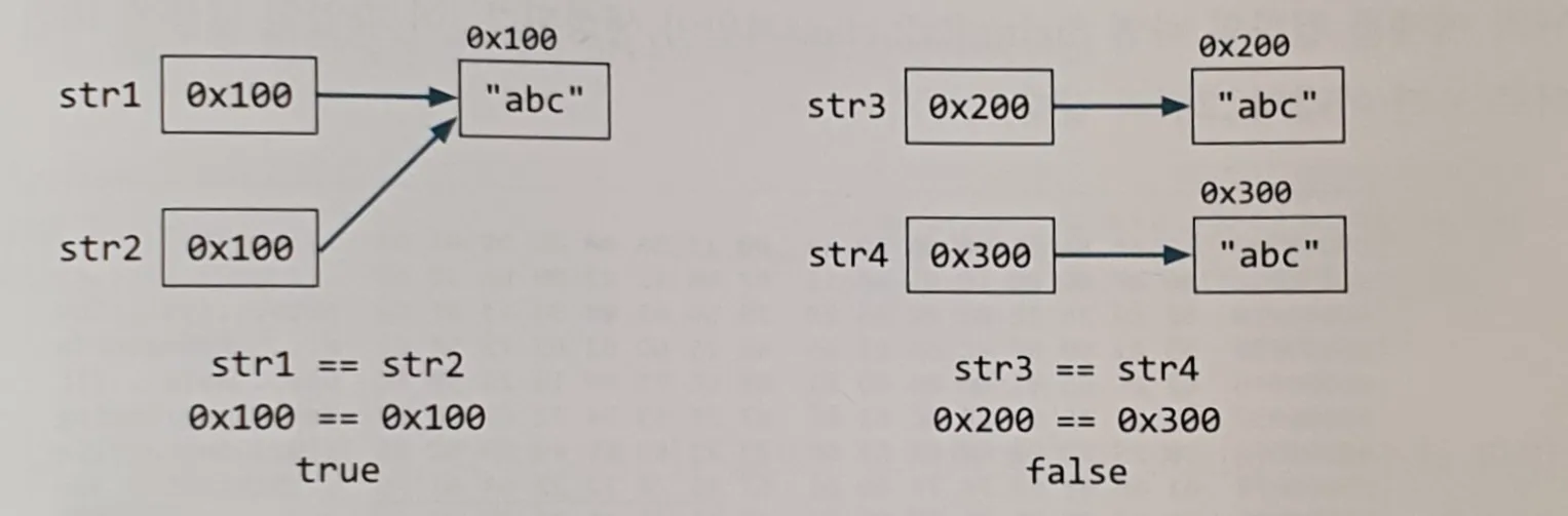 String str1 = "abc"; // 문자열 리터럴 "abc"의 주소가 str1에 저장됨.