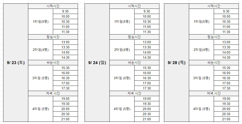 예약 기간 안내 9/1(금) 오전 9시 50분 ~ 9/3(일) 23시 59분까지