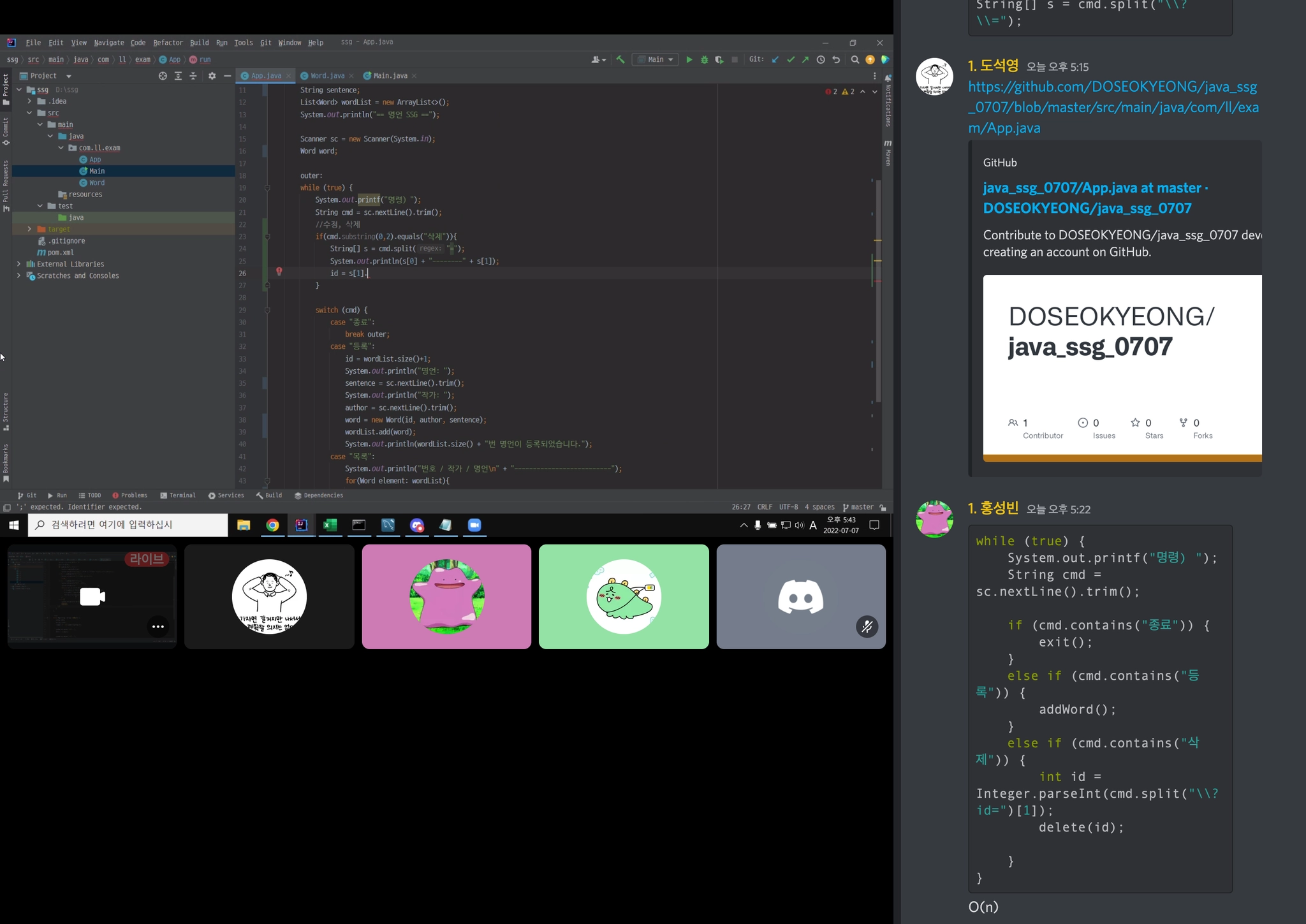 성빈: stream 문법의 경우 매번 사용하는 형식만 이용했었는데 생각보다 많은 기능이 담겨 있어서 이를 완벽하게 다루기 위해서는 여러 예제를 접해봐야겠다는 생각이 들었다.