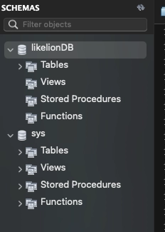mysql의 데이터베이스로 각 스키마는 안쪽에 테이블들을 가지고있다