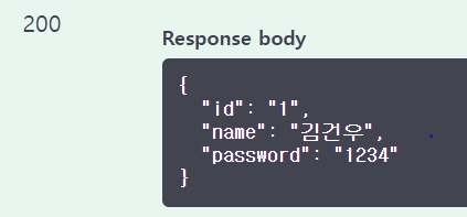 성공200 → 회원 Json객체로 response