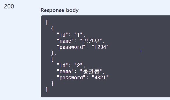 성공200 - > 디비에 저장되어있는 회원을 json객체 형식으로 가져왔다